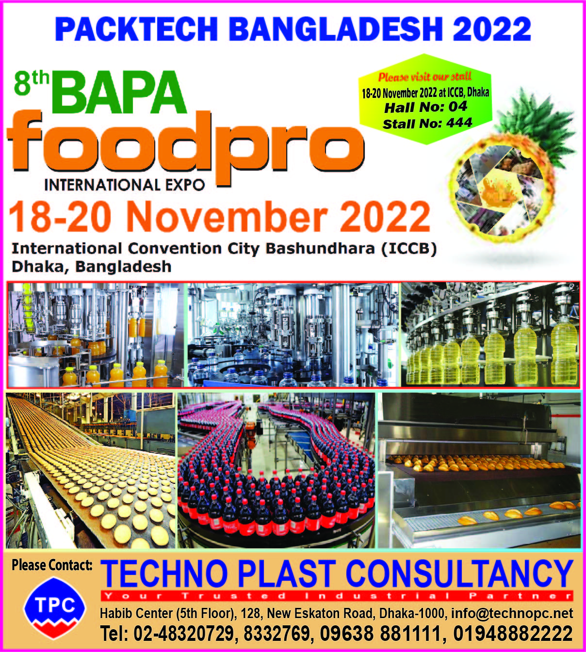 8th BAPA food pro International Expo will be held on 18-20 November 2022 at Bangabandhu International Conference Center (BICC).